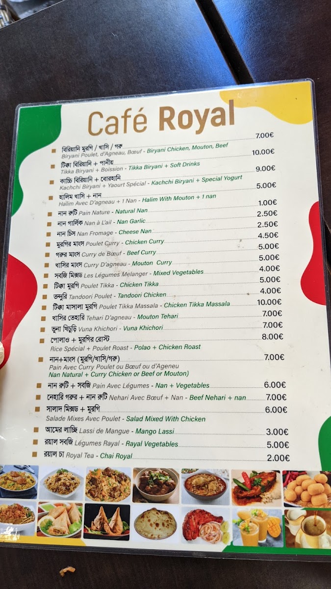 The menu is a celebration of vibrant spices and halal offerings, promising a memorable experience. Whether you're a local or a traveler, Cafe Royal invites you to indulge in the savory essence of Bangladeshi food, making it a must-visit culinary gem in Paris.